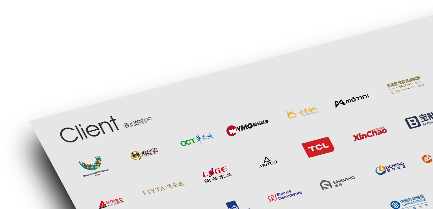 我們的客戶來自各行各業,為了共同目標,我們在工作上密切配合,從創業型小企業到知名品牌,感謝他們對我們的高要求,感謝他們從不同領域給我們帶來的挑戰,讓我們激情的團隊有機會用頭腦與智慧不斷的給客戶帶來驚喜。